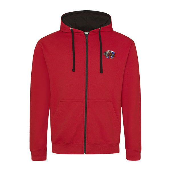 Sweat-shirt à capuche à zip intégral en plastique de couleur contrastée.